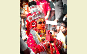 മലബാറിലെ നാറൂറോളം കാവുകളിലായി നൂറിൽപരം തെയ്യങ്ങൾ ഇപ്പോൾ കെട്ടിയാടുന്നുണ്ട്. ഇതിൽ ഒരു തെയ്യം മാത്രമാണ് സ്ത്രീ കെട്ടിയാടുന്നത്‐ കണ്ണൂർ ജില്ലയിലെ പഴയങ്ങാടിക്കടുത്ത് ചെറുകുന്ന് തെക്കുമ്പാട് ദ്വീപിൽ ദേവക്കൂത്തു എന്ന പെൺ തെയ്യം കേട്ടിയാടുന്നത്. വടക്കേ മലബാറിന്റെ തെയ്യത്താളത്തിൽ വിശേഷപ്പെട്ട ഒന്നായി ഇതു മാറുന്നത് പെണ്ണിന്റെ ചരിത്രം പെണ്ണു തന്നെ പറയുന്നു എന്നതുകൊണ്ട് കൂടിയാണ്. തെക്കുമ്പാട് കൂലോം തായേ കാവിൽ ഇപ്പോൾ ദേവക്കുത്തു കെട്ടുന്നത് അംബുജാക്ഷി ആണ്. കൂടുതൽ തവണ ദേവക്കൂത്തു കെട്ടിയത് അംബുജാക്ഷിക്കു മുൻപ് തെയ്യം കെട്ടിയ ചിരുതയാണ്. പിന്നാലെ ലക്ഷ്മിയമ്മയും 14 വർഷത്തിനിടെ ഏഴു തവണ തെയ്യം കെട്ടുകയുണ്ടായി. പോസ്റ്റൽ ഡിപ്പാർട്ട്മെന്റിൽ ജോലിയുണ്ടായിരുന്നു അവർക്ക്. 2010ൽ അംബുജാക്ഷി വേഷം കെട്ടിത്തുടങ്ങി. ലക്ഷ്മിയമ്മയുടെ ഭർത്താവ് കാട്ടുപറമ്പ് കേളു പണിക്കരും അംബുജാക്ഷിയുടെ ഭർത്താവ് കണ്ണൻ പണിക്കരും പ്രദേശത്തെ അറിയപ്പെടുന്ന തെയ്യം കലാകാരന്മാരാണ്. ലക്ഷ്മിയമ്മ നാല്പത്തിയെട്ടാമത്തെ വയസ്സിലാണ് ആദ്യം തെയ്യം കെട്ടിയത്. സാധാരണ തെയ്യം കെട്ടുന്നയാളുടെ ഒന്നാം അവകാശിയാണ് പിന്നീട് തെയ്യം കേട്ടാറുള്ളത്. ഒന്നാം അവകാശിക്ക് എന്തോ അസൗകര്യം വന്നപ്പോളാണ് ലക്ഷ്മിയമ്മ കെട്ടാനിടയായത്. ഉത്തരവാദപ്പെട്ടവർ കൂടിയാലോചിച്ച് രണ്ടാം അവകാശി കെട്ടട്ടെയെന്ന് തീരുമാനിക്കുകയായിരുന്നു. ഭർത്താവ് വീട്ടിൽവന്ന് കാര്യം പറഞ്ഞപ്പോൾ ഉൾക്കൊള്ളാൻ പ്രയാസപ്പെട്ടിരുന്നു. ദേവക്കൂത്തു മുൻപ് അവർ കണ്ടിരുന്നില്ല. നാല്പത്തിയൊന്ന് ദിവസത്തെ വ്രതം അനുഷ്ഠിക്കുകയും വേണം. മുദ്രകളും ശ്ലോകങ്ങളും ഒന്നും അറിയില്ലായിരുന്നു തോണിയിൽ വേണമായിരുന്നു ദ്വീപിൽ പോകാൻ. ചെറിയ കുട്ടികൾ വീട്ടിൽ ഉണ്ടായിരുന്നത് കാരണം അവരെ വിട്ടുപോകാനും കഴിഞ്ഞില്ല. ഭർത്താവാണ് പിന്നീട് എല്ലാം പഠിപ്പിച്ചത്. പാട്ട് പാടുന്നതിൽ താല്പര്യം ഉണ്ടായിരുന്നു. എല്ലാംകൂടി ആയപ്പോൾ പിന്മാറാൻ പറ്റാത്ത അവസ്ഥയായി.