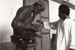 ഒരിക്കൽ കളിമൺപാത്രനിർമാണ തൊഴിലാളികളെ അടുത്തറിയാനെത്തിയ ബംഗാളിലെ പ്രമുഖനായ രാമാനന്ദ ചാറ്റർജിയെന്ന പത്രപ്രവർത്തകൻ അവിടെ കണ്ട നവീന രൂപമാതൃകകളിലുള്ള ശിൽപങ്ങൾ ശ്രദ്ധിക്കുകയും അതിന്റെ ശിൽപിയായ രാംകിങ്കറെ പരിചയപ്പെടുകയും ചെയ്തു. ശിൽപകലയിലുള്ള അദ്ദേഹത്തിന്റെ മികവ് തിരിച്ചറിഞ്ഞ ആ പത്രപ്രവർത്തകൻ കൂടുതൽ കലാപഠനത്തിന് നിർദേശിക്കുകയും രാംകിങ്കറെ ശാന്തിനികേതനിൽ എത്തിക്കുകയും ചെയ്തു. തുടർന്ന് ശിൽപകലാപഠനം ആരംഭിച്ച അദ്ദേഹം സാധാരണ കലാവിദ്യാർഥിയേക്കാൾ പക്വതയാർന്ന കലാവിഷ്കാരങ്ങളുമാണ് അവിടെ സൃഷ്ടിച്ചയത്. വിഖ്യാത ചിത്രകാരനും ശാന്തിനികേതനിലെ കലാധ്യാപകനുമായ നന്ദലാൽബോസ്, വിദ്യാർഥിയായ രാംകിങ്കറിനെ പ്രോത്സാഹിപ്പിക്കുകയും അദ്ദേഹത്തിന്റെ ആദ്യകാല രചനകളായ പെയിന്റിംഗുകളിലെ സവിശേഷതകളെ വിലയിരുത്തുകയും ചെയ്തിരുന്നു. ജലച്ചായത്തിലും എണ്ണച്ചായത്തിലും ടെന്പറ നിറങ്ങളിലുമായി വരച്ച നിരവധി ചിത്രങ്ങളോടൊപ്പം സ്വന്തമായ ശൈലിയും അർഥതലങ്ങളുമുള്ള ക്രിയാത്മക ശിൽപങ്ങളും രാംകിങ്കർ തയ്യാറാക്കിയിരുന്നു. ചിത്രകലയിലൂടെയുള്ള അദ്ദേഹത്തിന്റെ സഞ്ചാരം ഒടുവിൽ ചെന്നെത്തിയതും ശിൽപകലയിലേക്കായിരുന്നു‐ തുടർന്ന് സജീവമാകുകയും ചെയ്തു.