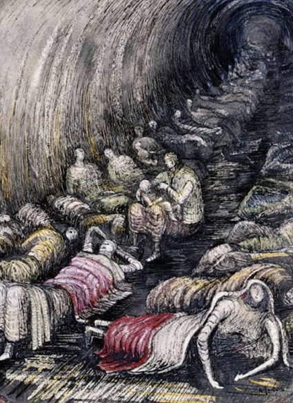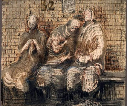ഹെൻട്രി മൂറിന്റെ ചിത്രങ്ങളിൽ, രേഖാചിത്രങ്ങൾ ശ്രദ്ധേയമാണ്. യുദ്ധകാല ഭീകരതയിൽ ആരംഭിച്ച ഷെൽട്ടർ ഡ്രോയിംഗുകളും കാസ്റ്റിൽഫോർഡ് കൽക്കരി ഖനി തൊഴിലാളികളുടെ ചിത്രങ്ങളും അദ്ദേഹത്തിന്റെ ശിൽപങ്ങൾപോലെ തന്നെ ചിത്രകലാരംഗത്തെ മികവിന്റെ ഉദാഹരണമായി കലാസ്വാദകർ വിലയിരുത്തുന്നു. അസ്വസ്ഥരും പീഡിതരുമായ ഖനിത്തൊഴിലാളികളുടെ ജീവിതം പകർത്തിയ ചിത്രങ്ങൾ സവിശേഷമായ ശ്രദ്ധയാകർഷിക്കുന്നവയാണ്.